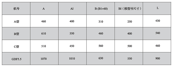 注: A型、B型、C型三檔規格的尺寸以風量為依據,詳見性能參數.