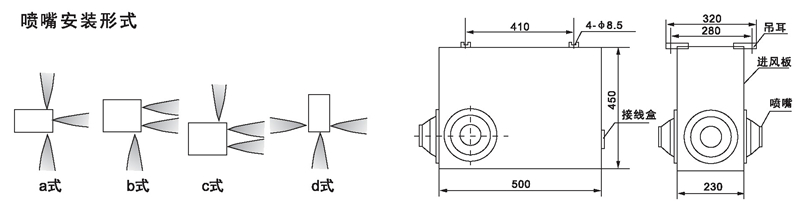 四、外形尺寸及噴嘴安裝形式