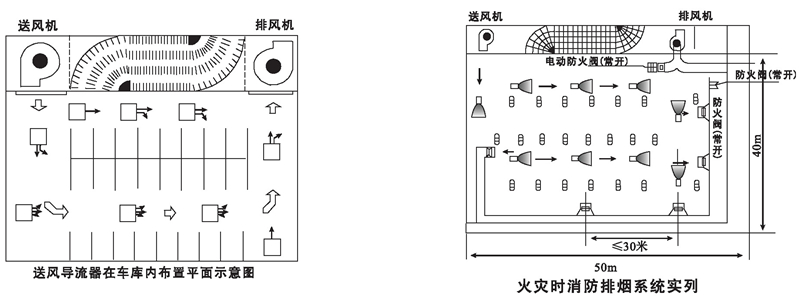 對地下停車場,可有效地排除汽車排放的一氧化碳及其它污染氣體,節省層高空間,方便其它管道布置,通風換風的效果比傳統的風管通風系統更佳。