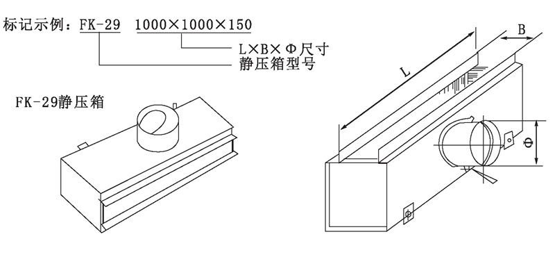 靜壓箱是與條縫形風口配套的必不可少的配件,主風道送風通過軟管接至靜壓箱的頸部(即“中”尺寸處)此處設有一個蝶形閥,可控制進入靜壓箱的風量。靜壓箱的內表面貼有吸音減震材料,起到消除部分噪音的作用。送風道配置靜壓箱能減少動壓增加靜壓,起到穩定氣流的作用,使之能得到更理想的送風效果。BXL可根據條縫風口尺寸而定,中尺寸根據所選用的軟管直徑而定,L尺寸用戶可在小于2米范圍內任意選取,還可以根據用戶的特殊要求承接靜壓箱的設計制造。